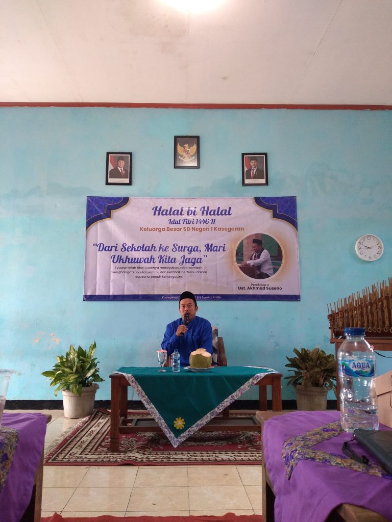 Sementara itu, Kepala Desa Kasegeran, Bapak Saefudin, S.H., dalam sambutannya menyampaikan bahwa halal bihalal merupakan bagian dari sejarah umat Islam Indonesia. Tradisi ini pertama kali dicetuskan oleh KH. Abdul Wahab Hasbullah pada tahun 1948 sebagai bentuk silaturahmi dan rekonsiliasi di tengah konflik politik saat itu. Ia juga mengapresiasi semangat kebersamaan yang ditunjukkan oleh SD Negeri 1 Kasegeran.
